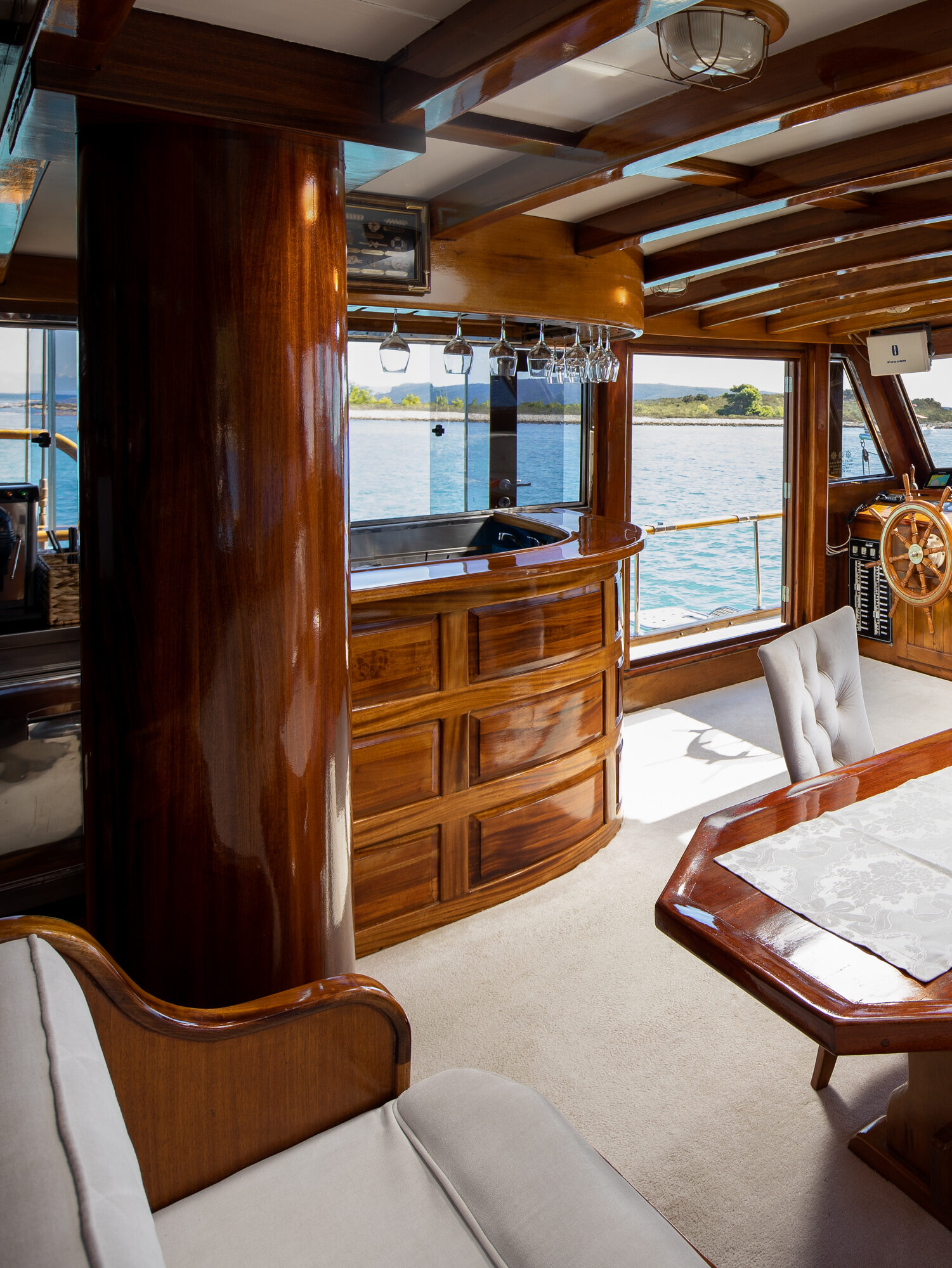 Andi Star is a true star of the sea. Her classic wooden hull, teak deck, and stunning interiors leave the guests in awe.