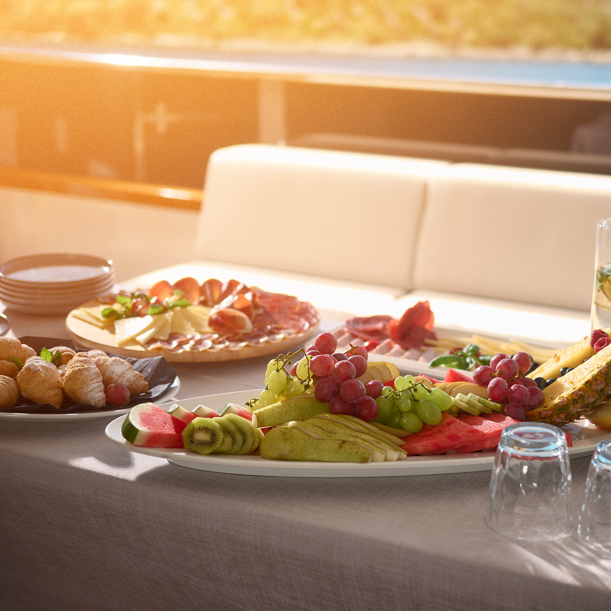 Agency Support: guidance through the booking procedure, paperwork, preparation for the cruise, food, drinks, and route organization, during the cruise support, assistance in case of emergency. Entire support before and during the cruise. Shipboard accommodation: maximum number of 28 guests sleeping in 14 cabins. Massages: 4 massages/day. Fuel for cruising: 4 hours/day Crew: 12 Air conditioning: unlimited hours/day.