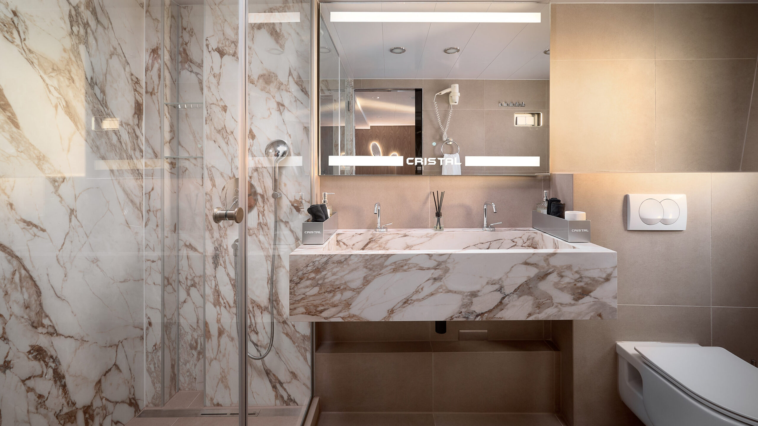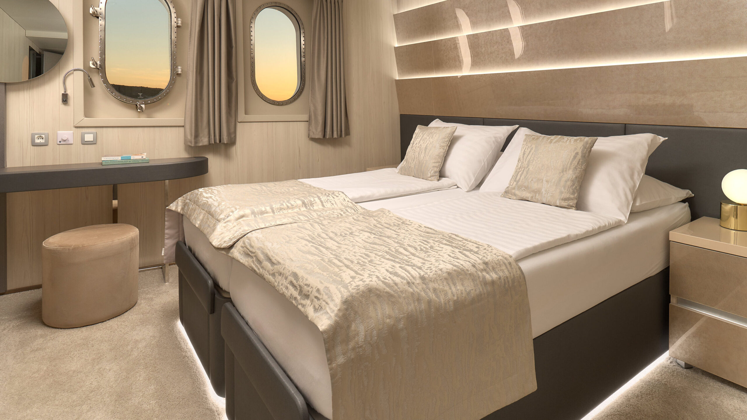 Comfortable mattresses and crisp white sheets are sure to encourage sweet dreams. Cabins on the main deck are donned with sizeable windows offering a gorgeous view of the passing islands. Cabins below the deck are extra spacious and intimate, great for sleeping in.