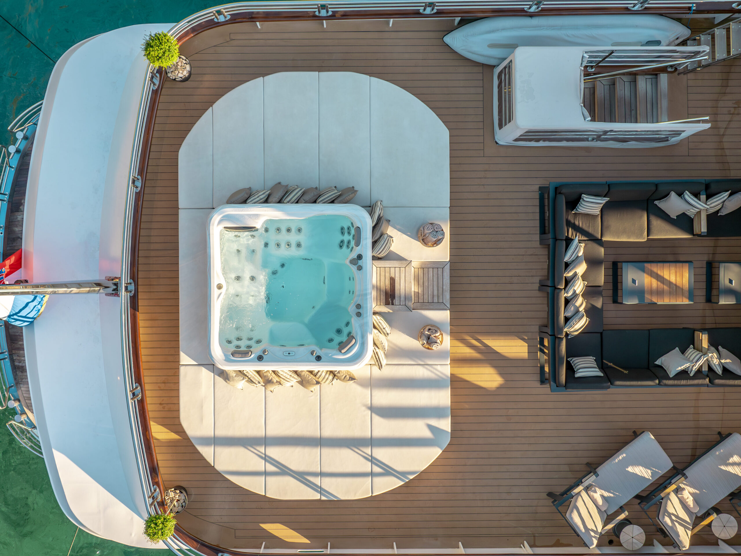 featuring delicious culinary delights and amenities such as a swimming pool and jacuzzi on the sundeck,