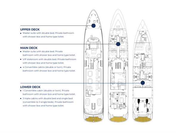 Disclaimer: This document is for informational purposes only and is not contractual. While we strive for accuracy, the publisher makes no warranties regarding the completeness or usefulness of the information and images provided. Yacht inventory, specifications, prices, etc., may change without notice. Reproduction of any text or images from this document requires written consent from the publisher.