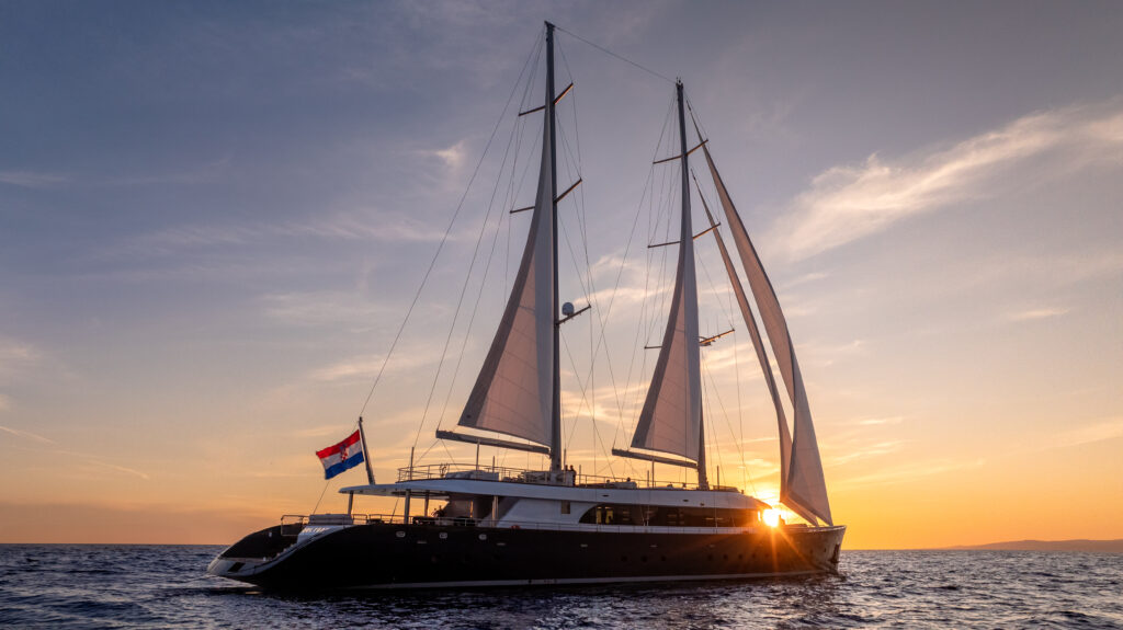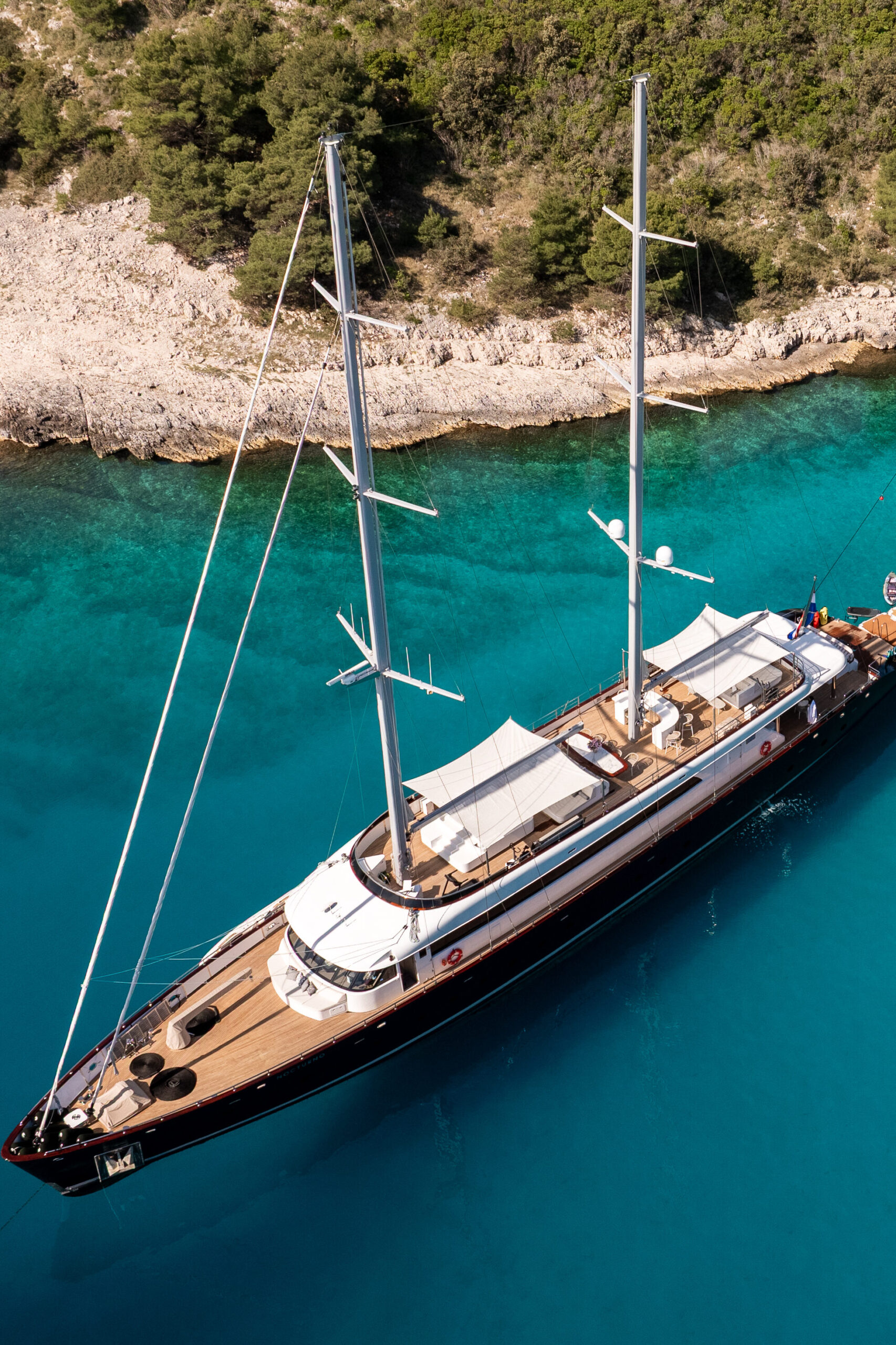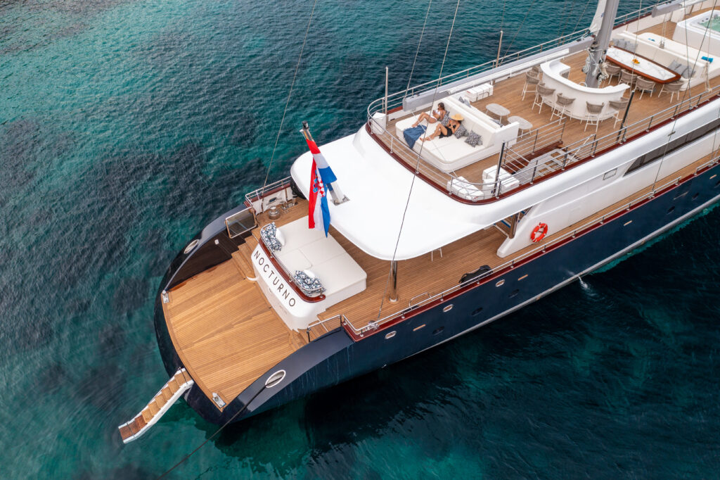 Crafted in 2023 and designed for those who appreciate both freedom and finesse, Nocturno is a 6-cabin luxury motorsailing yacht offering an effortless blend of timeless elegance and state-of-the-art engineering. With sleek lines, spacious outdoor lounges, a professional 9-crew team, and a commitment to refined comfort, she’s built to impress. Your adventure begins here.