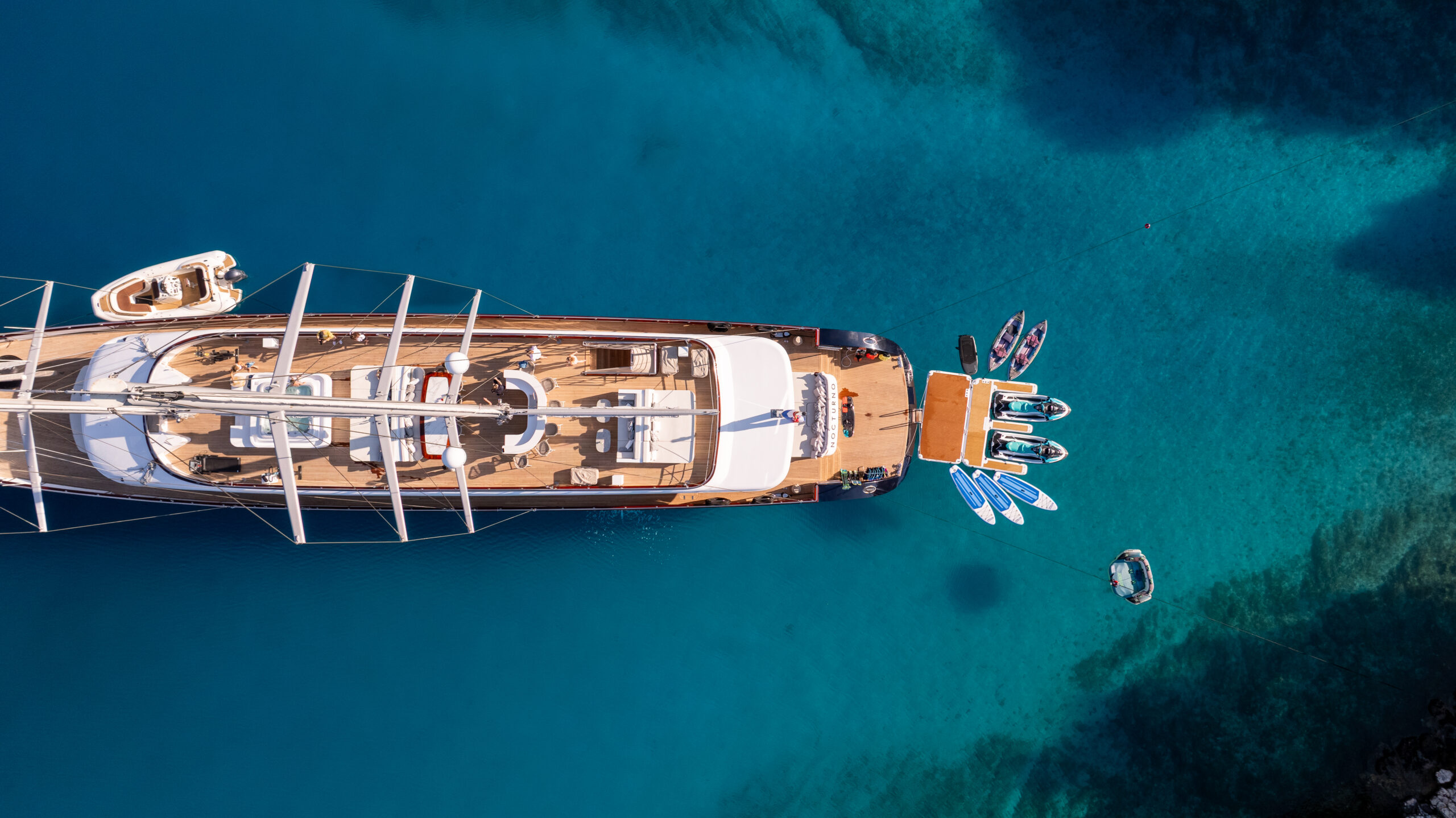 Nocturno blends five-star service, tailored cuisine, and elegant design — all without the superyacht price tag. Her dedicated crew ensures every detail is handled with care, while her spacious layout and top-tier amenities make life on board effortless.