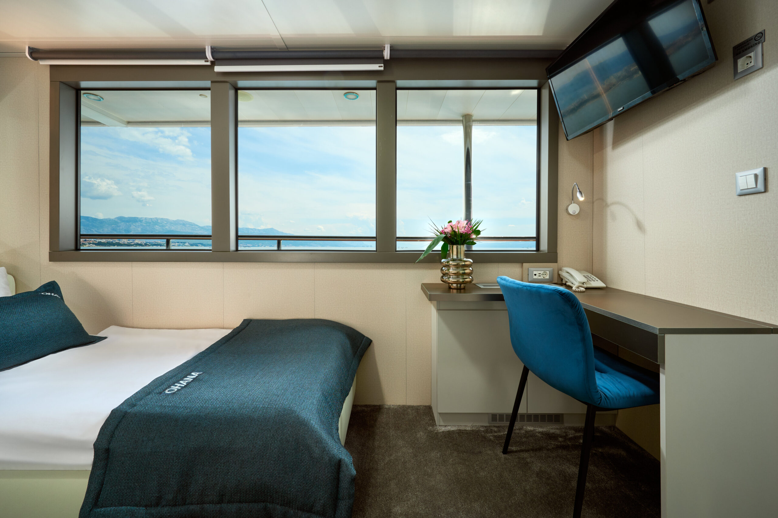 – VIP CABIN (number 2 and 3 on cabin layout) 13m2 convertible (twin or double) with two single beds (90 X 200 cm). Private bathroom with shower box and home-type toilet.